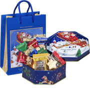 クリスマスのチョコレートをバラエティ豊かに詰め合わせしたサンタさんのイラストが可愛い商品です。