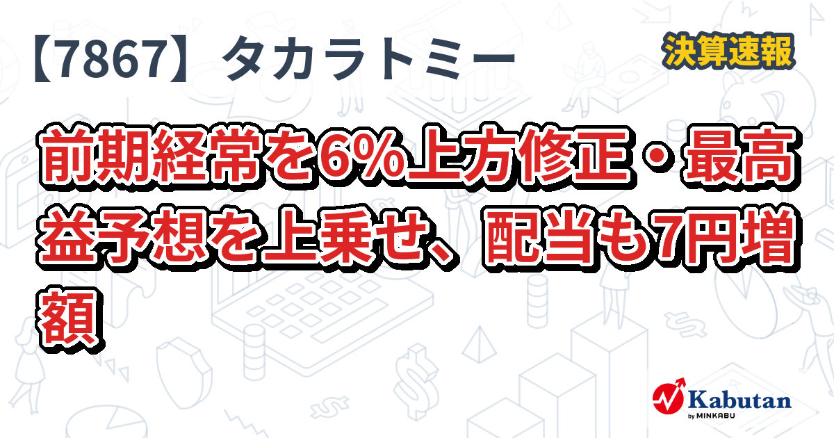 昨日、上方修正と増配を発表したタカラトミーが上げています