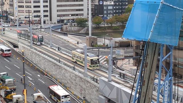 二階へ行き来する路面電車