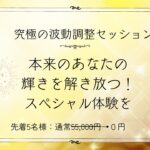 【無料プレゼント】本来のあなたの輝きを解き放つ!スペシャル体験をーーー通常55,000円の「究極の波動調整セッション」を先着5名様にプレゼント!