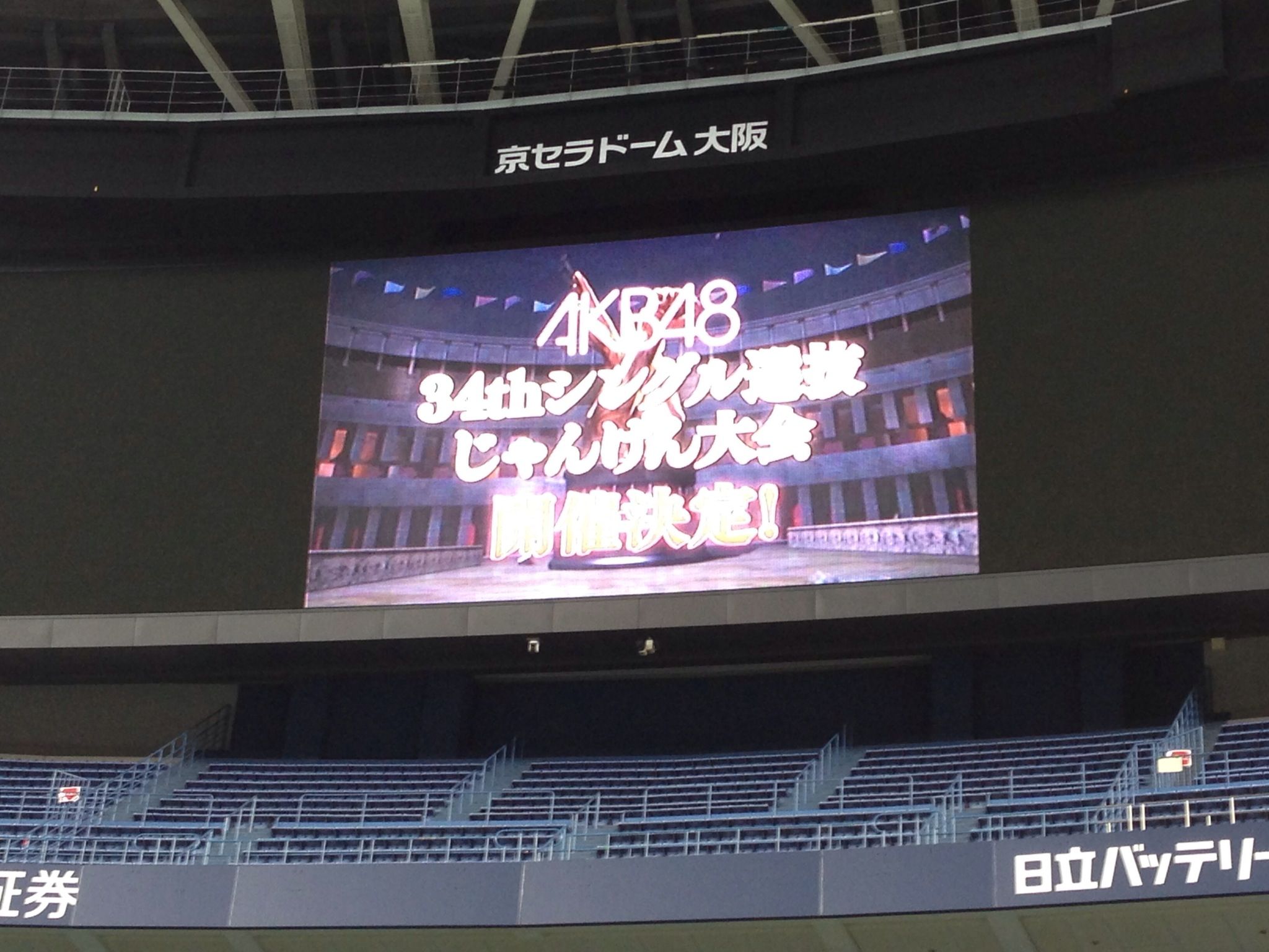 本日6/23(日)京セラドーム大阪にて行われております握手会会場にて、AKB48 34thシングル選抜じゃんけん大会開催決定及び33rdシングルの発売予定についての発表がありました。