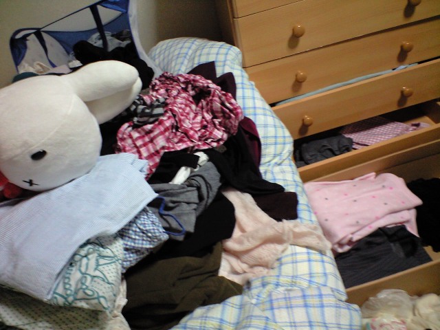カオス(笑)お部屋が(笑)ミッフィーも手伝って、やっっっと衣替え('-^*)あぁぁぁぁぁ、終わらない(;_;)悪い癖で、いろいろ引っ張り出すウエダ。あ、これはいらんなぁ…あ、これは布行き。あ、探してたやつ…とかやってたら(笑)終わらなきゃ寝れん!ベッドの上だから…したっけね…