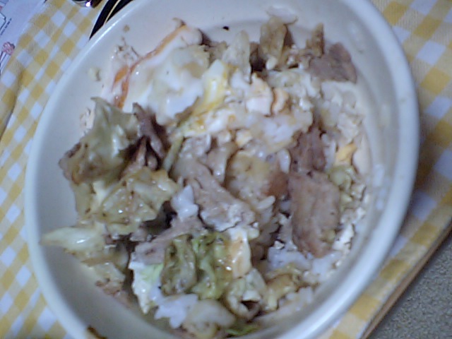 豚肉とキャベツを中華味で炒めて、玉子とじ。