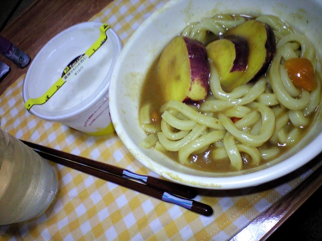 冬にはカレーうどんと思うくらい昨日、寒かったから作ってみた~ルーのかけらがあったしね(^O^)買ってきたサツマイモを入れる~サツマイモとカレー味って、合うのよね(*^_^*)サツマイモのカレーきんぴら旨しっっっしかーし、なんで今日は暑いんじゃあぁぁぁぁ~(*´Д`)=зはぁぁぁそれでもホットコーヒーを飲むウエダでふ(笑)したっけね~