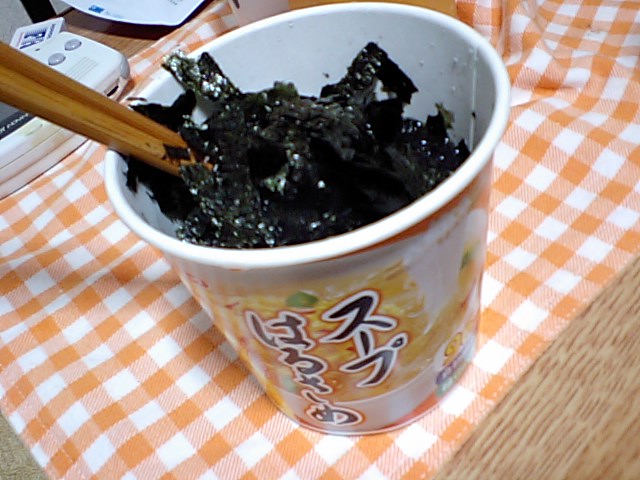 最近、海苔がマイブームで、ご飯味噌汁ところてんチャーハン…と、なんにでもきざみのり。