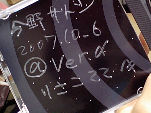 DJイベントに行こう♪偶数月のイベント、ver,αっていう、DJイベントのため、三軒茶屋へ~前回はえりかつんと行ったんだけど、今回は独り(>_<)大丈夫かしら…主催さんやみんなが、イロイロとかまってくれて、楽しい時間を過ごしましたo(^-^)o好きな曲だけじゃなくて、いろんな曲が聞けて楽しかった~GAIAの芝居の曲を作った、今野くんのアルバムにサイン貰いましたーGAIAで使った曲も入ってます~オススメ!…どこで買えるんだっけ(笑)したっけね~