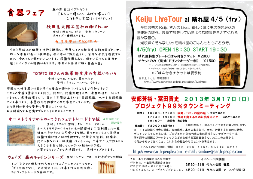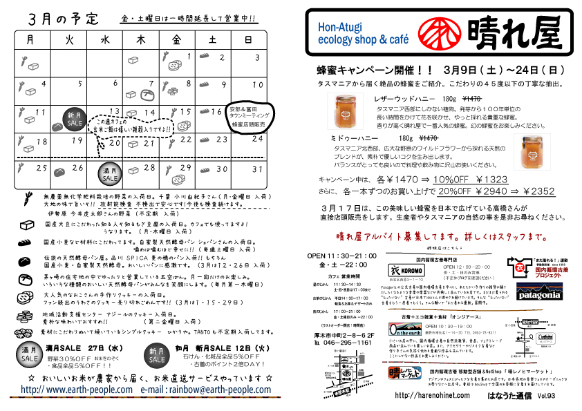 おいしい野菜や食材・せっけん・フェアトレード雑貨オーガニックコットン・布ナプキン・天然化粧品・古着・古道具・楽器・本。 そして オーガニックカフェ。チキュウにやさしいものを。そんな想いの晴れ屋のきまぐれブログ。ちょっと覗いてみてください☆