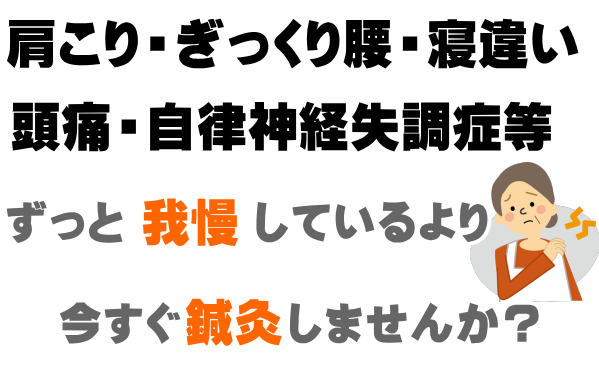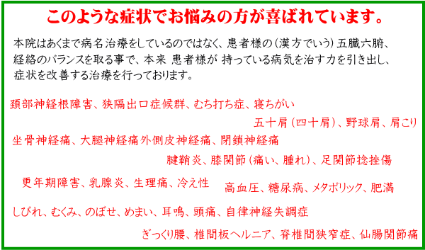 首が痛い、手足の痛み、背中が痛い、膝の痛み、関節痛、神経痛、