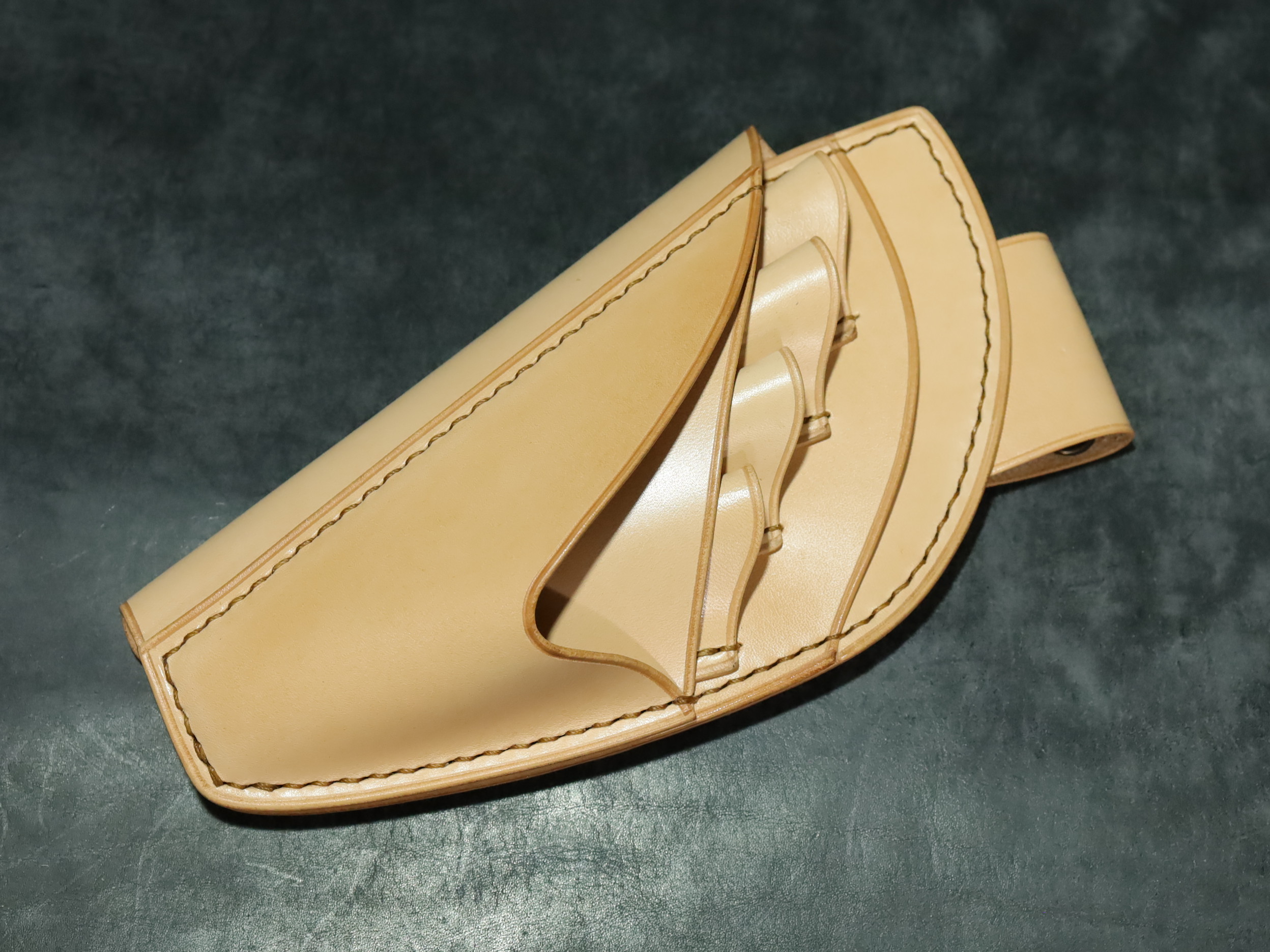 今まで手染めのみの販売でしたが、思い切って生成りの革でシザーケースを商品化いたしました