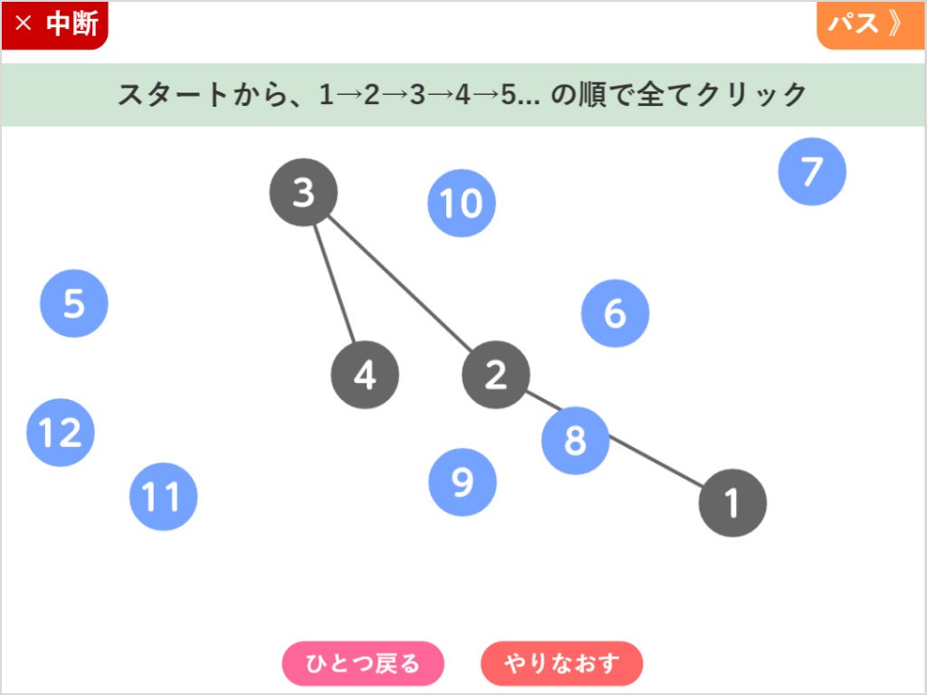 ・3つの認知機能に関する簡単なゲーム(タスク)を実施してもらう事で、認知機能を客観的に定量評価します。