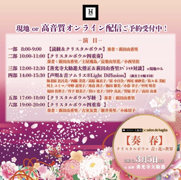 善光寺大勧進 ✕ salon de hagita 「奏春 クリスタルボウル 音と花の世界」
