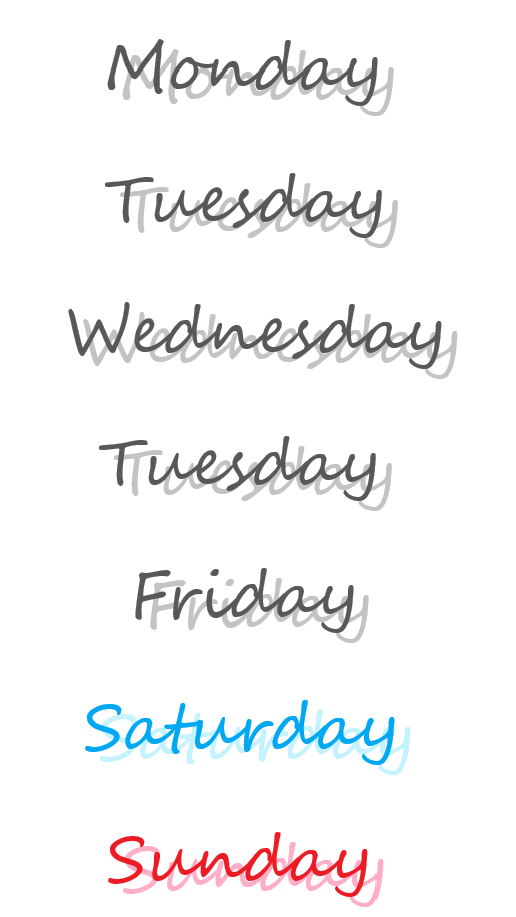 曜日の名前を並べた『week』も。