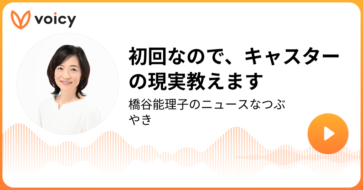 初回なので、キャスターの現実教えます | 橋谷能理子「橋谷能理子のニュースなつぶやき」/ Voicy - 音声プラットフォーム音声放送チャンネル「橋谷能理子」の「初回なので、キャスターの現実教えます(2022年1月11日放送)」。Voicy - 音声プラットフォームvoicy.jp