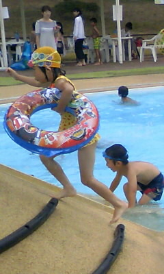 プールでは大はしゃぎ