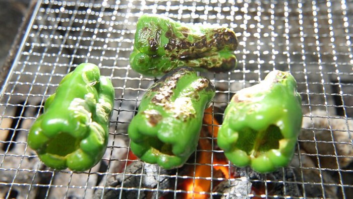 ピーマンのヘタをとり内側に味噌を塗って焼く