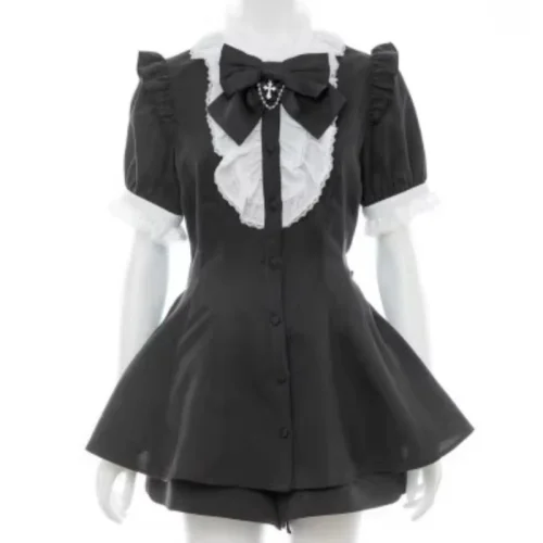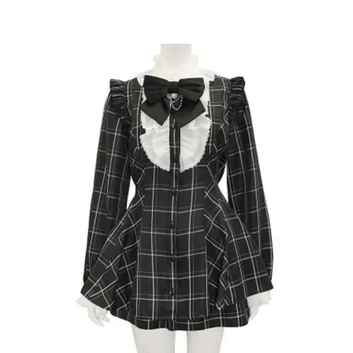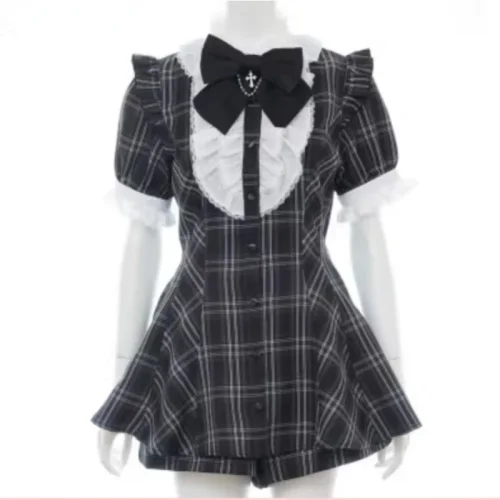 最近、SNSでよく見かけるY2Kファッションに挑戦したいなと思っていたところ、偶然見つけたのがこの「日本のゴシックY2Kロリータチェック柄ラインストーンリボンワンピースショートパンツセット スウィートレディースパフ半袖ボタンシャツパーティードレス」です。甘すぎず、でもしっかり個性的!というデザインに一目惚れして、すぐに購入を決めました。
