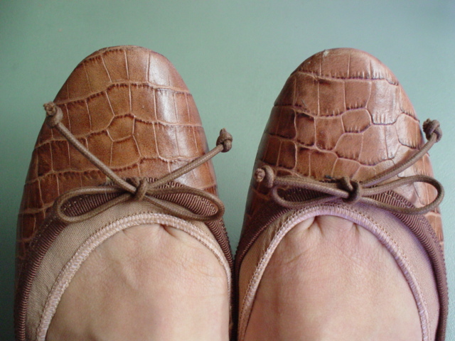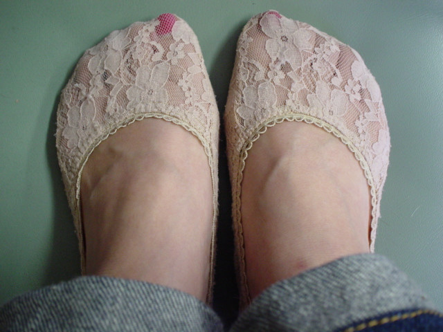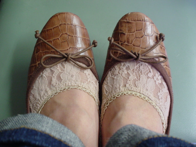 ↑指先浅めのバレエシューズだと、ソックス部分がけっこう目立ちます。