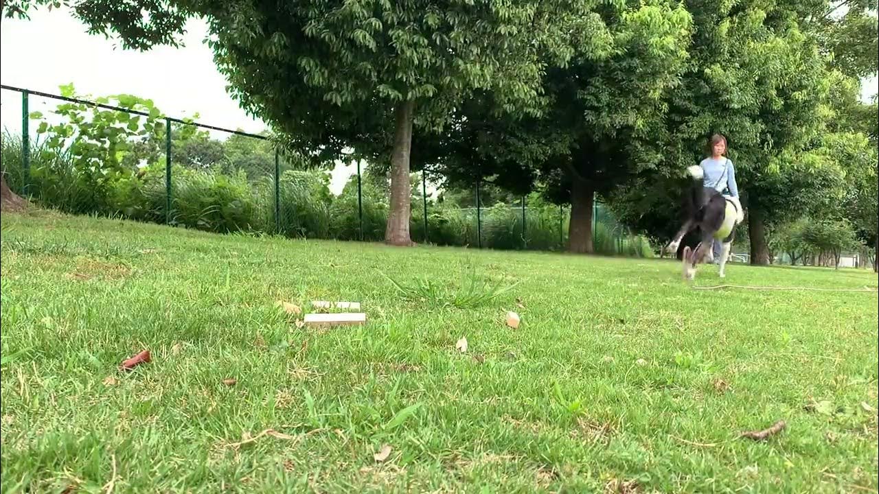 動画は木片を密集させて置き、他を咥えたりせずに持ってくるという練習。