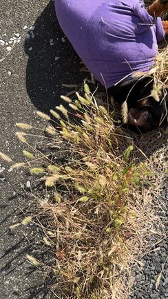 看板犬モモの水浴び 何をされてもパパのひざが好き 芝生型墓所大理石クリーニング