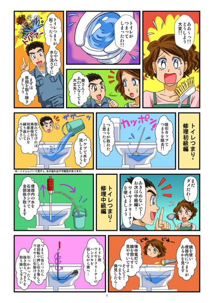 復旧作業例 (トイレの詰まり):