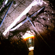 ![]() | 枡の中へ高圧洗浄のホースを挿入中です。 |