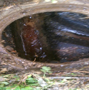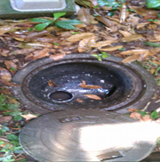 ![]() | こちらの写真も枡が詰まっています。確認したとこと排水管との継ぎ目に根っこが生え排水をせき止めていました。 |