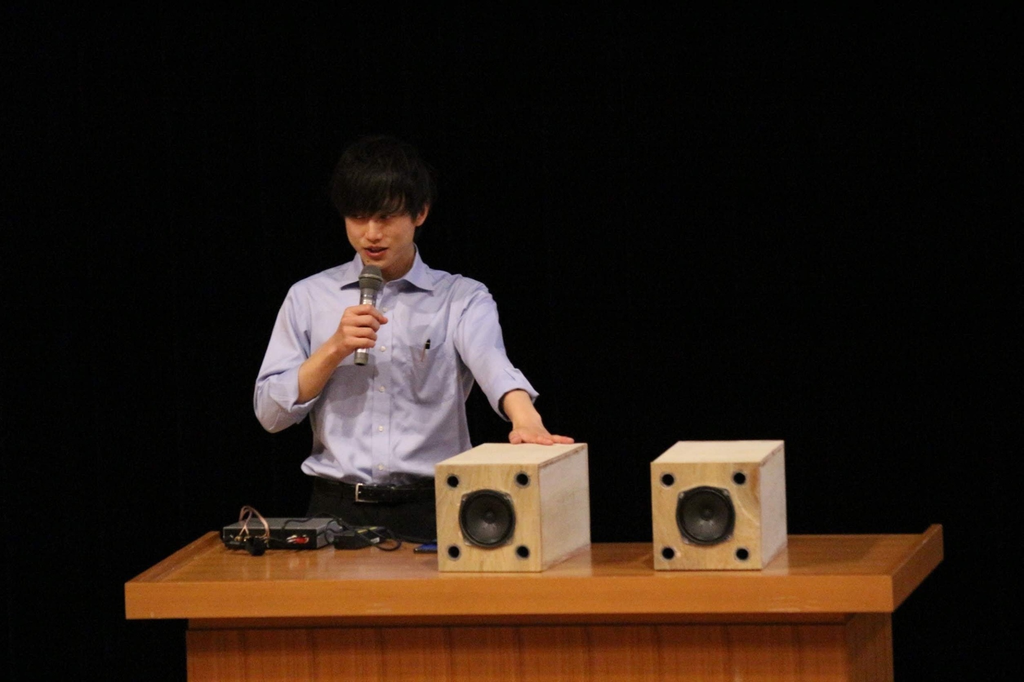 大学の自作スピーカーのプレゼンコンテストの様子
