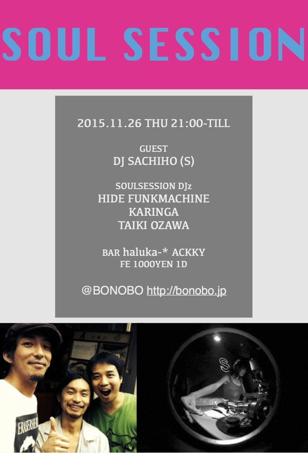 11月のソウルセッションはDJ SACHIHOを召喚!初木曜ボノボ登場です!DEEPHOUSEを軸にBASS&BEATの効いたキレのあるサウンドを披露して頂けます~楽しみです。 皆様お集まりよろしくお願いいたします!
