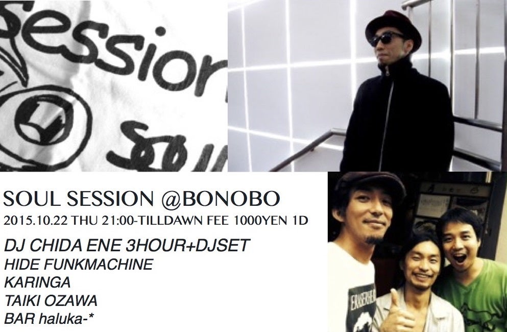 10月今月のソウルセッションはDJ CHIDA氏ボノボ2月のソウルセッション以来の登場です!!今回3時間のロングセットを披露していただけます!超期待ですね!
