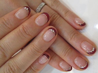 ボルドーのグラデーションにゴールドのラメを散らしています!