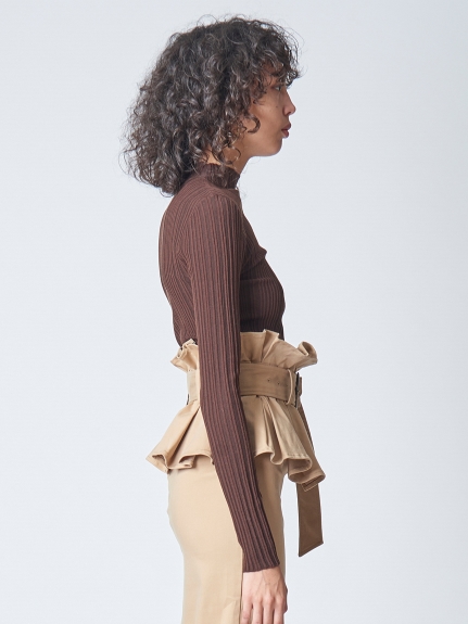身体にフィットするランダムリブで女性らしいラインを描きます◎
