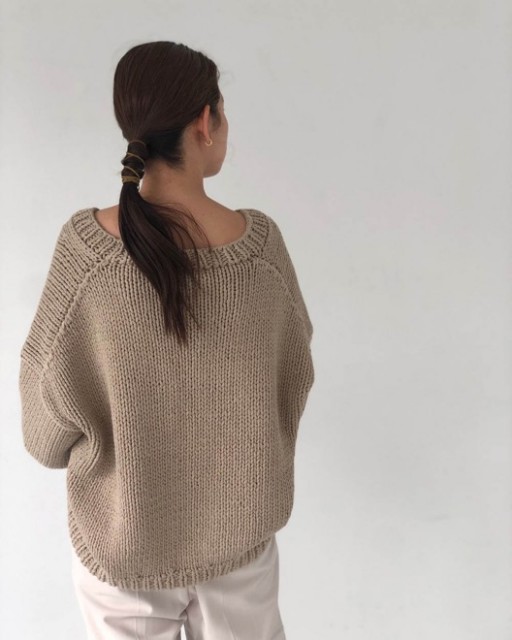 ざっくりとした手編みのボリューム感が魅力のVネックハンドニット。