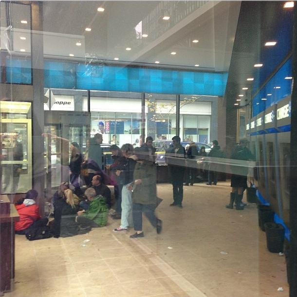 1. ミッドタウンのまだ閉まっているスターバックスの前でWi-Fiを求めて集まる人々