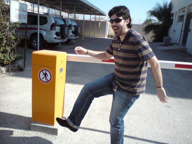 15. 許可の無いトレーニングは禁止、の標識の前で腕立て伏せ。
