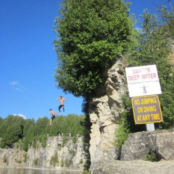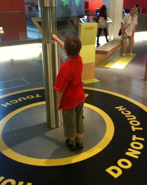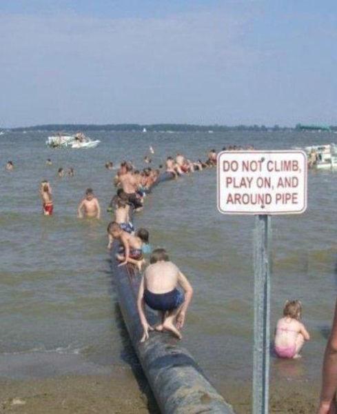 31. 「パイプの上に登ること、周りで遊ぶこと禁止」。子どもには通用しない。
