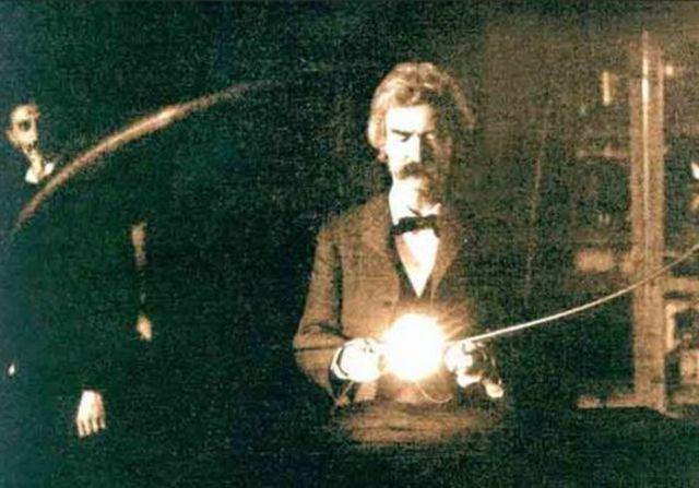 20. ニコラ・テスラの研究室にいるマーク・トウェイン(1894年)