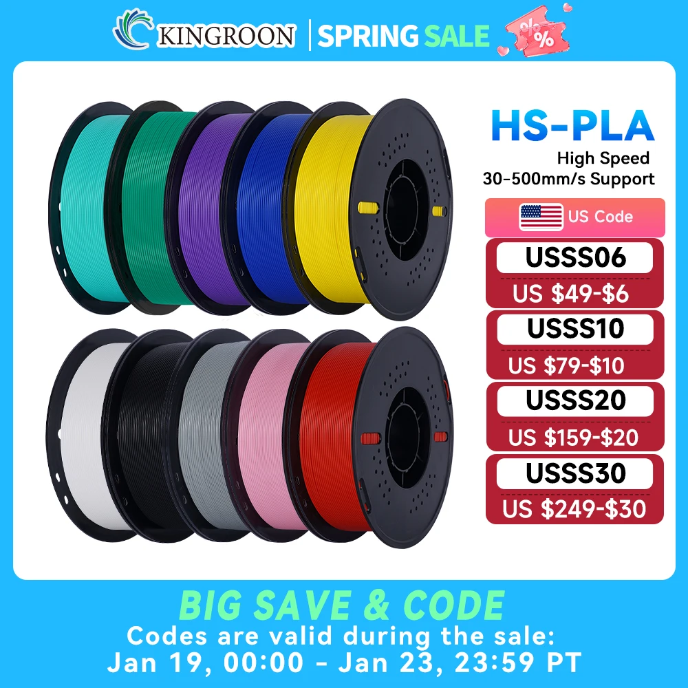 KINGROON High Speed PLA Filament 1.75mm New HS-PLA 3D Printer Filament For 30-500mm/s Fast Printing Rapid PLA 5kg 10kg Mix Color