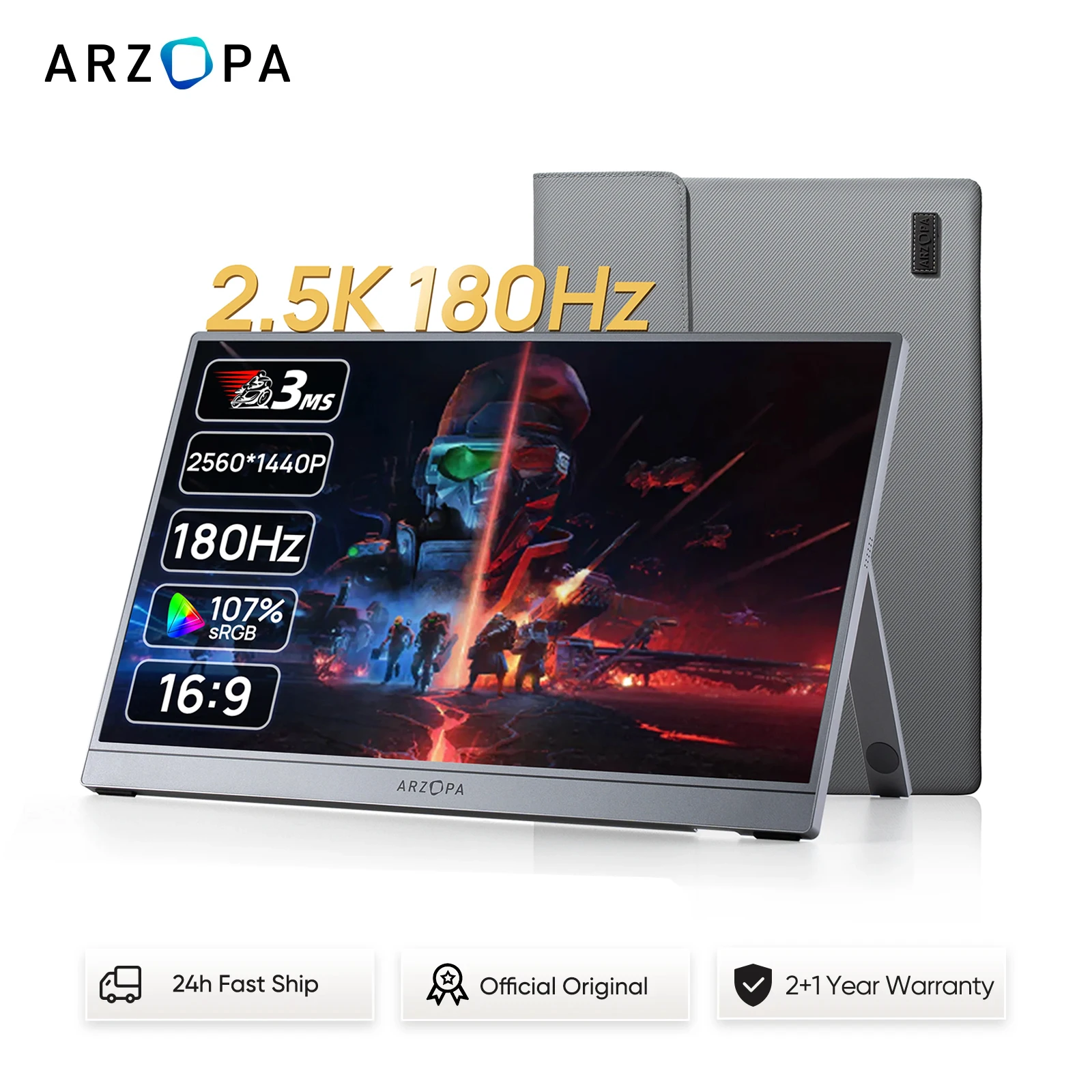 ARZOPA 16.1in 180HZ 2.5K Portable Monitor 107% sRGB HDR IPS External Second Screen for Laptop/PC/PS5/Mac/Xbox Z3FC Gray with Bag