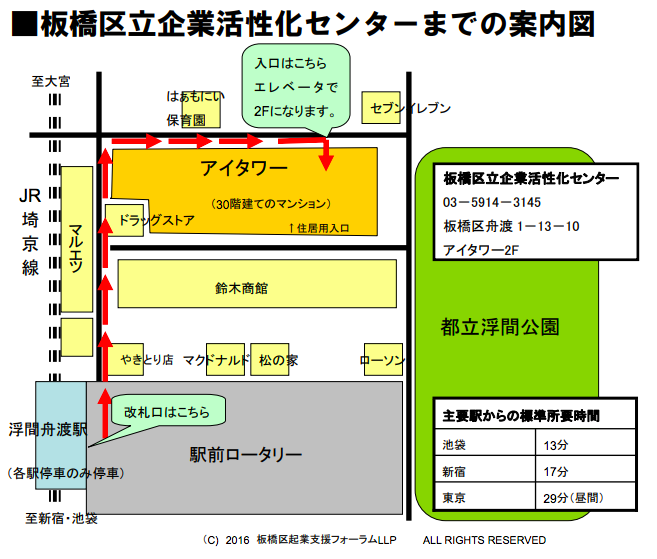 場所:板橋区立企業活性化センター (最寄駅 池袋駅から12分の浮間舟渡駅。駅から徒歩3分)