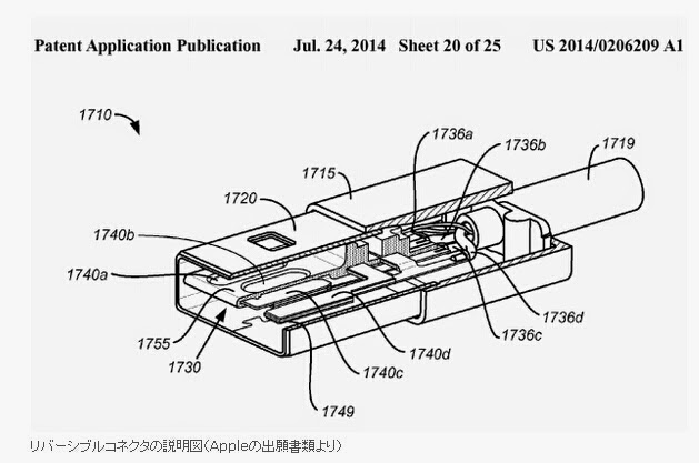 Appleは今年の1月に米特許商標局(USPTO)に「REVERSIBLE USB CONNECTOR」の特許を出願しており、現在審査中だ。