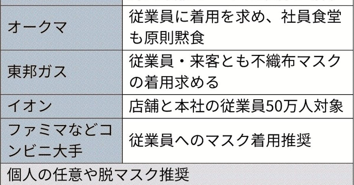 マスク着用ルールが個人の判断に委ねられて13日で1カ月を迎える。民間調査では9割がマスクを着用し続けている。イオンなど従業員に着用を推奨する企業も多い。いち早く新型コロナウイルス後の「正常化」に動いた欧米諸国の着用率は昨夏時点で5割を切っており、マスクを「外さない日本」の姿が鮮明だ。