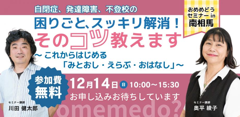 おめめどうセミナーin南相馬12/14(日)福島県南相馬市にて