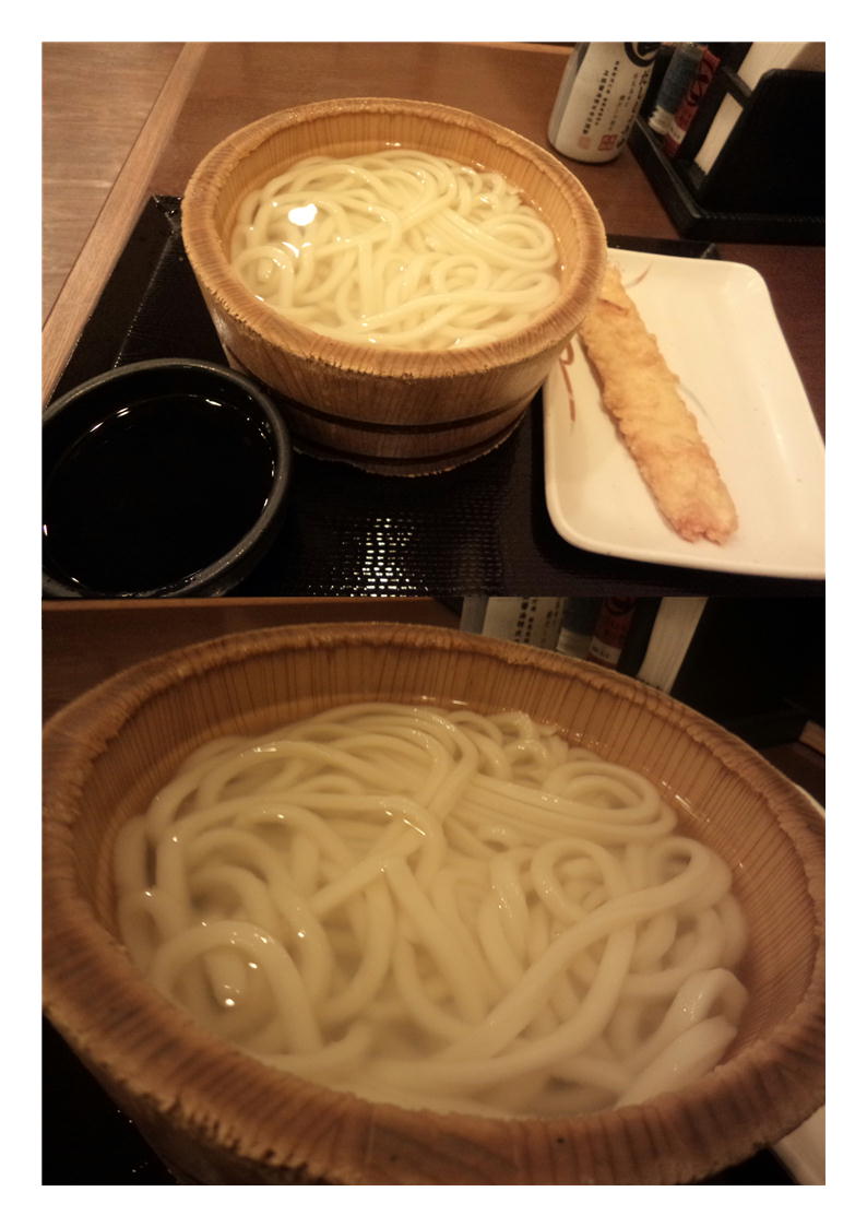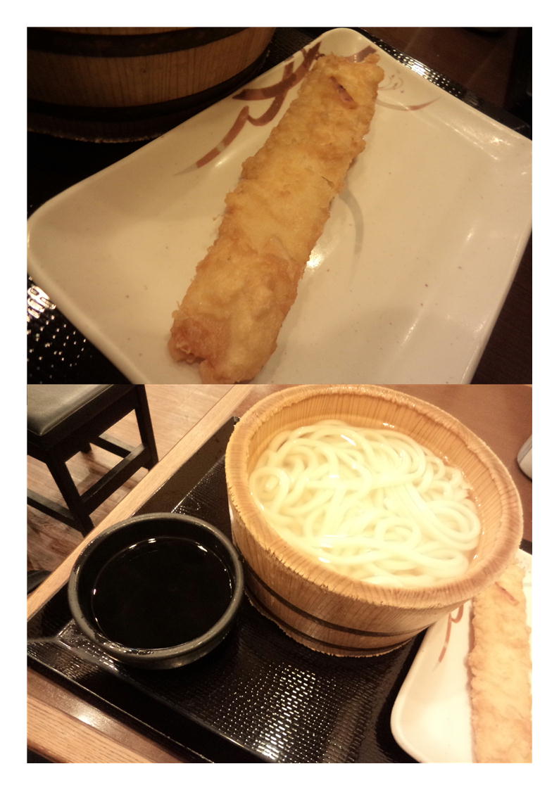 このての店になれているわけでもないので、頑張ってみた。間違いが少ない、①釜揚げうどん+②イカの天ぷら。会計をすませ席を探せば、奥野ほうがあいている。しかし、その席はボロボロ、修繕もせずガムテープが無造作に張られていた。そのテープも素手に痛んでいる。珍しい店舗である。