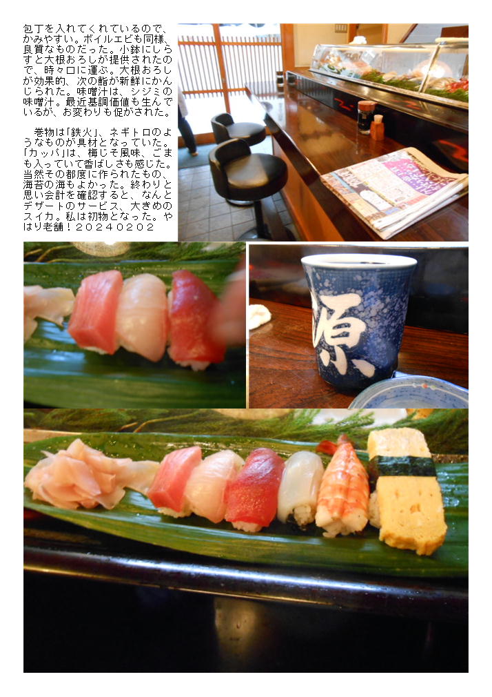 まだランチ寿司を1000円以下で提供していた。この立地で立派なものである。ご夫妻の客に対する対応、ランチでも変わらぬところが、下町の寿司屋を感じられる。客席は以前の雰囲気、昭和レトロを感じる。丁寧に維持されているのであろう、変わらぬ雰囲気が何か良い。奥さんがスポーツ新聞をさりげなく渡してくれる仕草も以前のまま。客商売はこうでなくてはならない。