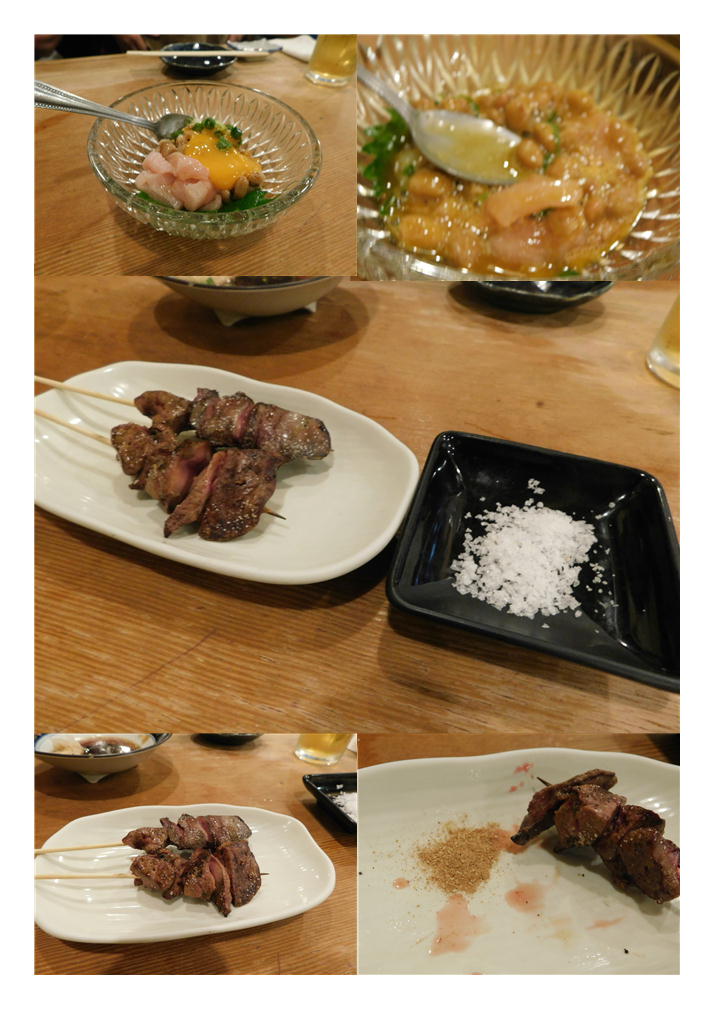 いよいよ焼き物が提供されてきた。価格のことを言って申し訳ないが、50円から150円程度である。①ハツ②心臓が塩で最初にだされた。やや甘みのある岩塩だろうか、追い塩が付けられていた。付けると一層美味しくなった。③レバーも同様である。次は、タレで④むねトロ⑤わかせせり⑥生肉が登場冷めない内に頂いた。マヨネーズも頼んだのかどうか解らないが付けられていた。