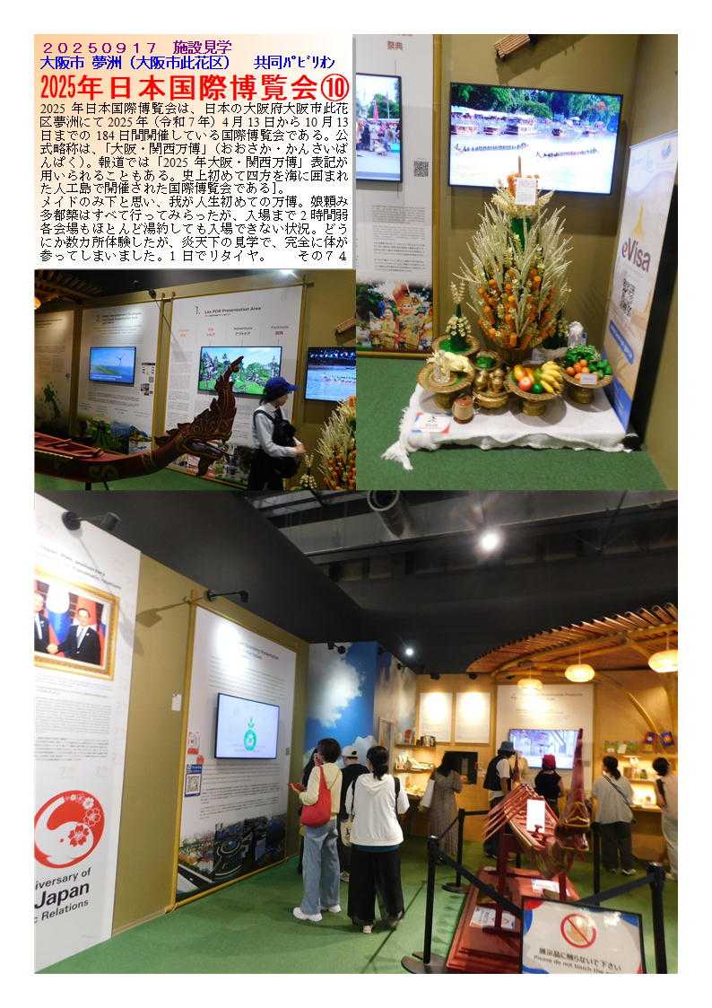 私の情報は、facebook twitter. を確認ください。「中華街を大切にする人」「ご利用する人」にはご協力をします。質問があれば、コメント欄 or sosamu@ya2.so-net.ne.jp にご連絡ください。中年おじさんの散策part2-2 から移行しています中華街の魅力は楽天ブログに今後移行していく予定です。https://plaza.rakuten.co.jp/sosamu02d/データーはライブドアーブログに掲載します。「中華街の魅力」https://sosamu02dhide.livedoor.blog/以前のデーターはアメバブログに移行しています。中華街の魅力中華街のいろいろなことを述べていきます。お問い合わせは、sosamu@ya2.so-net.ne.jp までお願いします。20250917 施設見学大阪市 夢洲(大阪市此花区) 2025年日本国際博覧会⑩2025年日本国際博覧会は、日本の大阪府大阪市此花区夢洲にて2025年(令和7年)4月13日から10月13日までの184日間開催している国際博覧会である。公式略称は、「大阪・関西万博」(おおさか・かんさいばんぱく)。報道では「2025年大阪・関西万博」表記が用いられることもある。史上初めて四方を海に囲まれた人工島で開催された国際博覧会である]。メイドのみ下と思い、我が人生初めての万博。娘頼み多都築はすべて行ってみらったが、入場まで2時間弱各会場もほとんど湯約しても入場できない状況。どうにか数カ所体験したが、炎天下の見学で、完全に体が参ってしまいました。1日でリタイヤ。