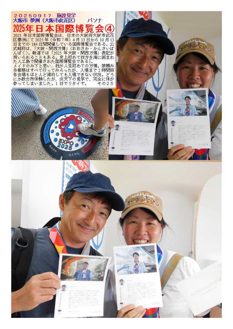 私の情報は、facebook twitter. を確認ください。「中華街を大切にする人」「ご利用する人」にはご協力をします。質問があれば、コメント欄 or sosamu@ya2.so-net.ne.jp にご連絡ください。中年おじさんの散策part2-2 から移行しています中華街の魅力は楽天ブログに今後移行していく予定です。https://plaza.rakuten.co.jp/sosamu02d/データーはライブドアーブログに掲載します。「中華街の魅力」https://sosamu02dhide.livedoor.blog/以前のデーターはアメバブログに移行しています。中華街の魅力中華街のいろいろなことを述べていきます。お問い合わせは、sosamu@ya2.so-net.ne.jp までお願いします。20250917 施設見学大阪市 夢洲(大阪市此花区) パソナ2025年日本国際博覧会④2025年日本国際博覧会は、日本の大阪府大阪市此花区夢洲にて2025年(令和7年)4月13日から10月13日までの184日間開催している国際博覧会である。公式略称は、「大阪・関西万博」(おおさか・かんさいばんぱく)。報道では「2025年大阪・関西万博」表記が用いられることもある。史上初めて四方を海に囲まれた人工島で開催された国際博覧会である]。メイドのみ下と思い、我が人生初めての万博。娘頼み多都築はすべて行ってみらったが、入場まで2時間弱各会場もほとんど湯約しても入場できない状況。どうにか数カ所体験したが、炎天下の見学で、完全に体が参ってしまいました。1日でリタイヤ。