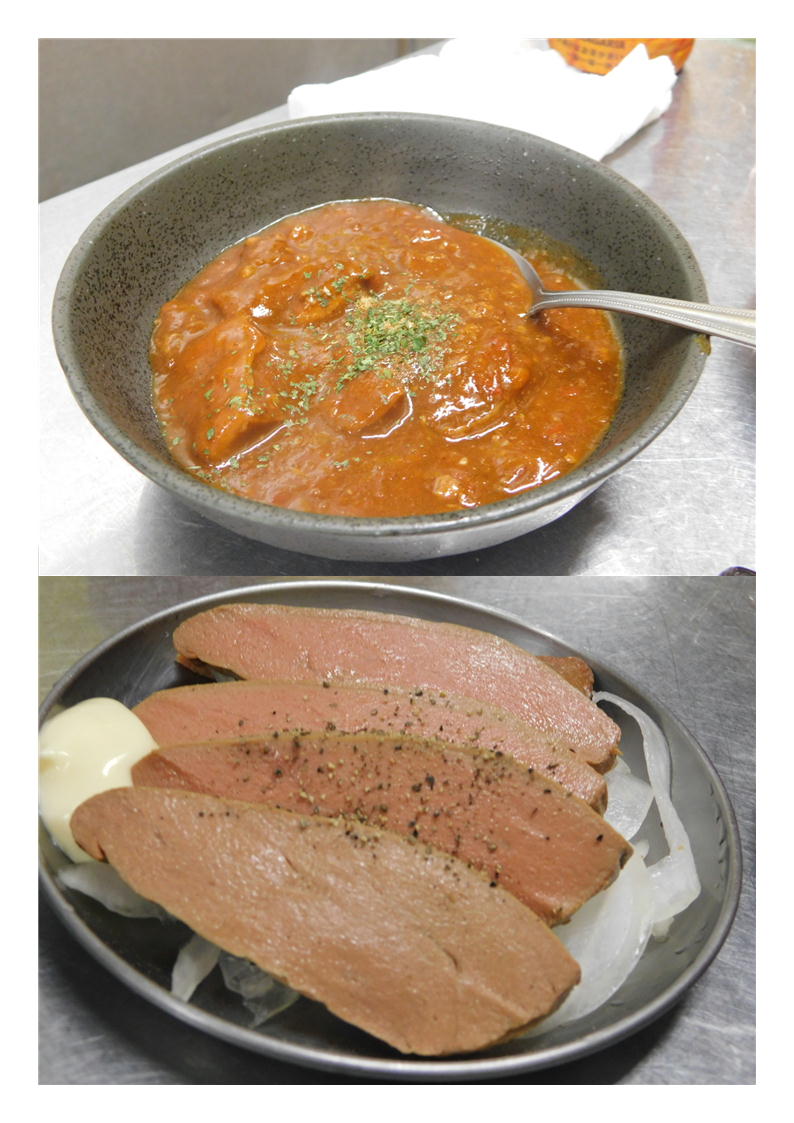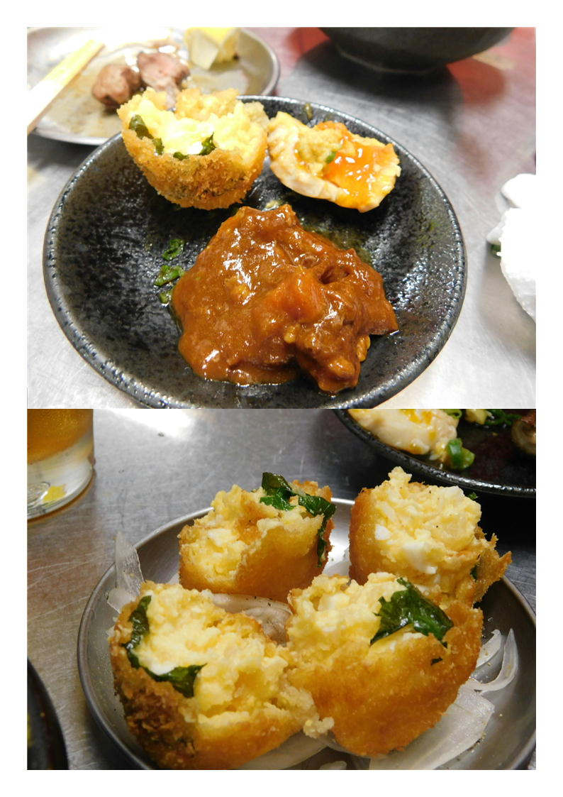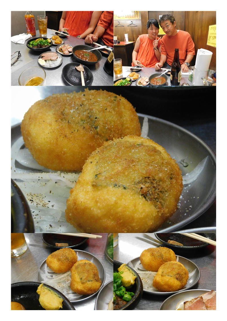 続いて、③スモークタン。多分一度ボイルしているのかもしれないが、それを燻製にした物。香りも十分しみこみ、味は易しく仕上げられていた。胡椒がかけられインパクトを加えていた。一気に頼んでくれたのだろうか、続々とでで来る。④乃々家コロッケ(石戸氏が好みらしい)。コロッケではあるが何かのりも巻かれている。きれいに揚げられている。食べてみればやはりコロッケ、おもしろいものだった。よくいろいろな物を考える物だ。感心する。