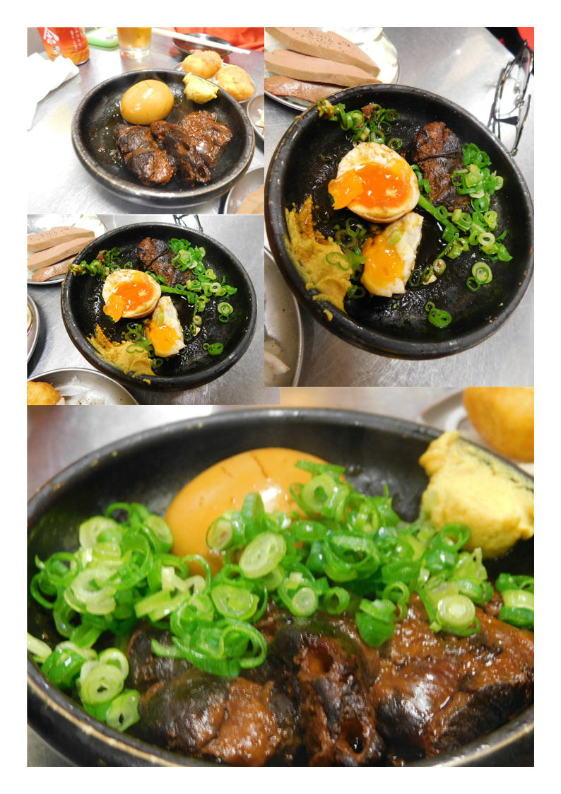 ひとしきり。落ち着きお腹も満たされ始めた。娘たちは若いのでまだまだのようであるうらやましい。しばらくしておいしそうな物が登場した。「バラ軟骨」というらしい・煮込み料理とも焼き料理ともつかない物は、味がじっくりしみこみおいしいものだった。煮卵も同時に入っていたのか注文したのか定かではないが、半熟の上にやはり味がしみこんでいた。この店の私のおすすめかもしれない。