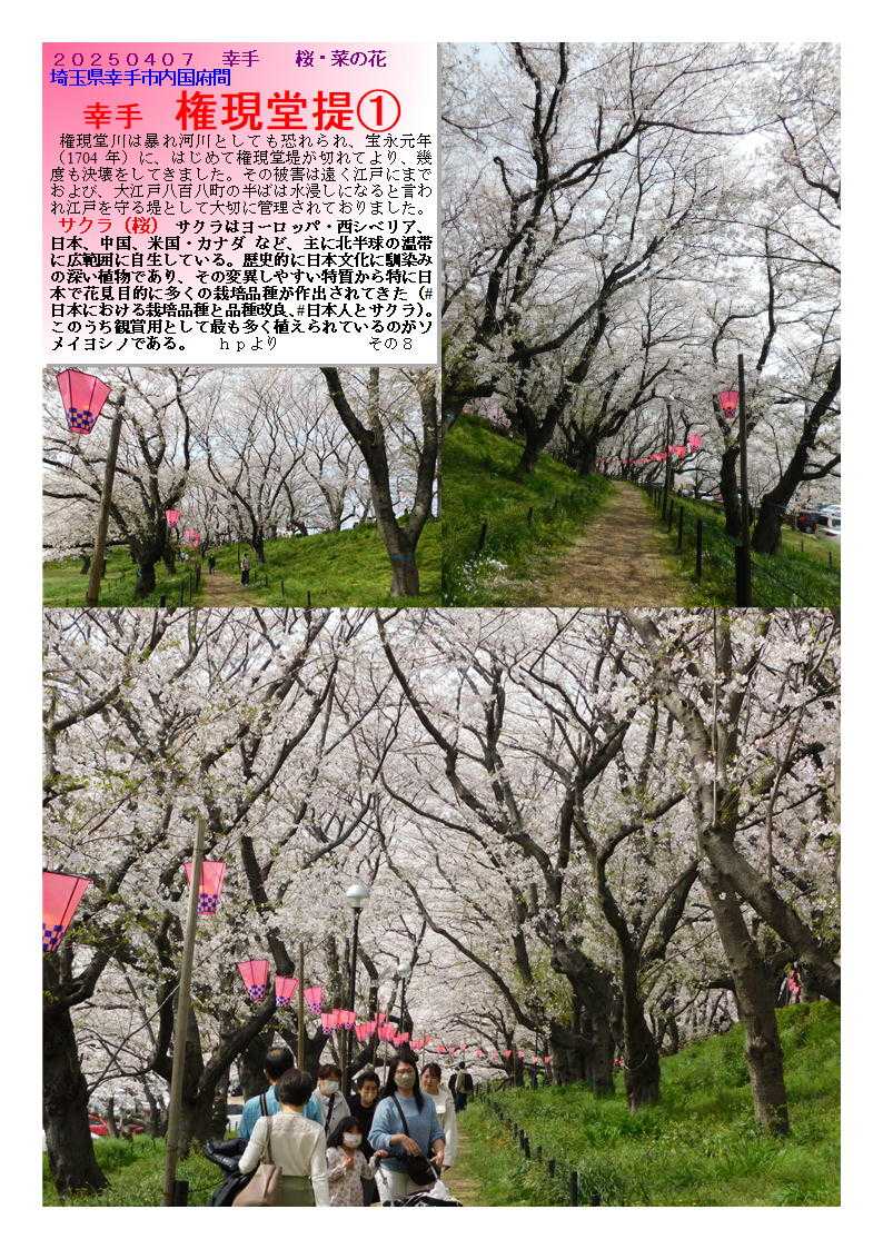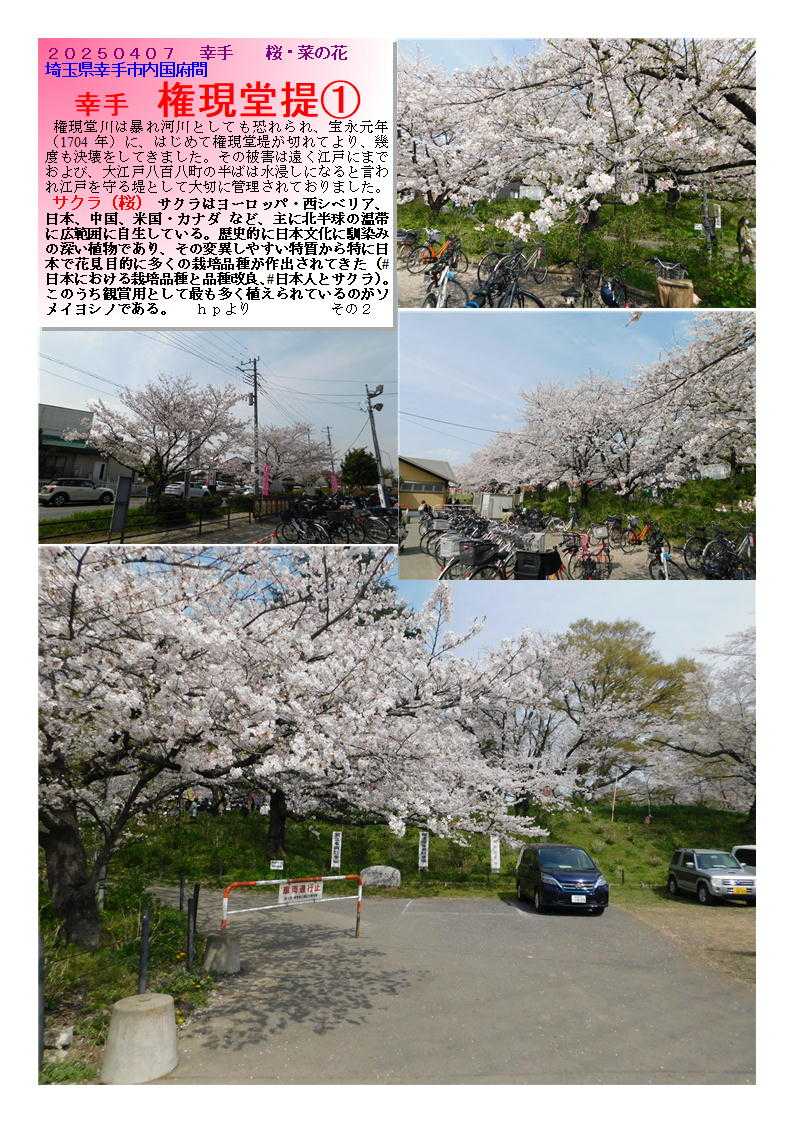 権現堂川は暴れ河川としても恐れられ、宝永元年(1704年)に、はじめて権現堂堤が切れてより、幾度も決壊をしてきました。その被害は遠く江戸にまでおよび、大江戸八百八町の半ばは水浸しになると言われ江戸を守る堤として大切に管理されておりました。